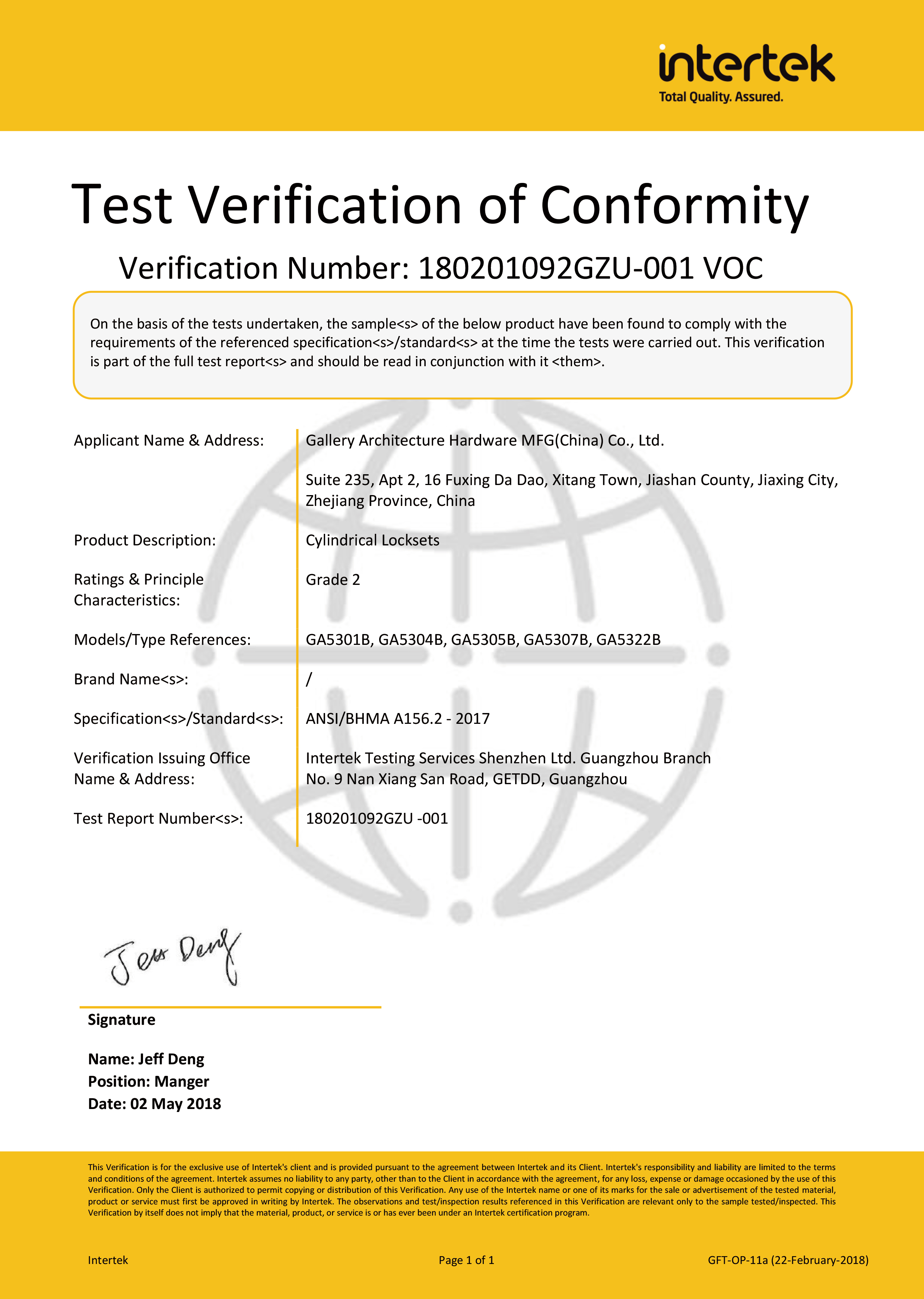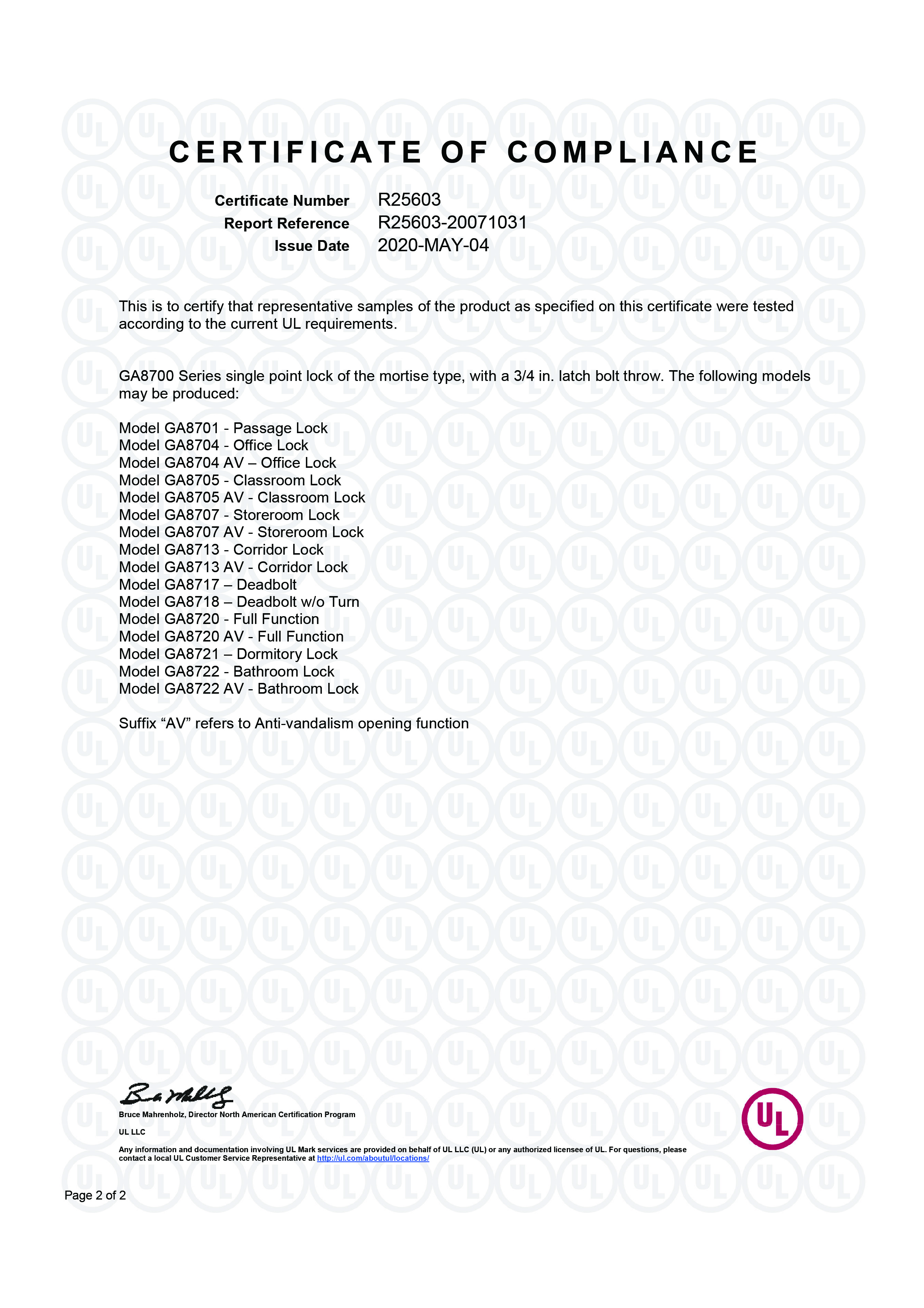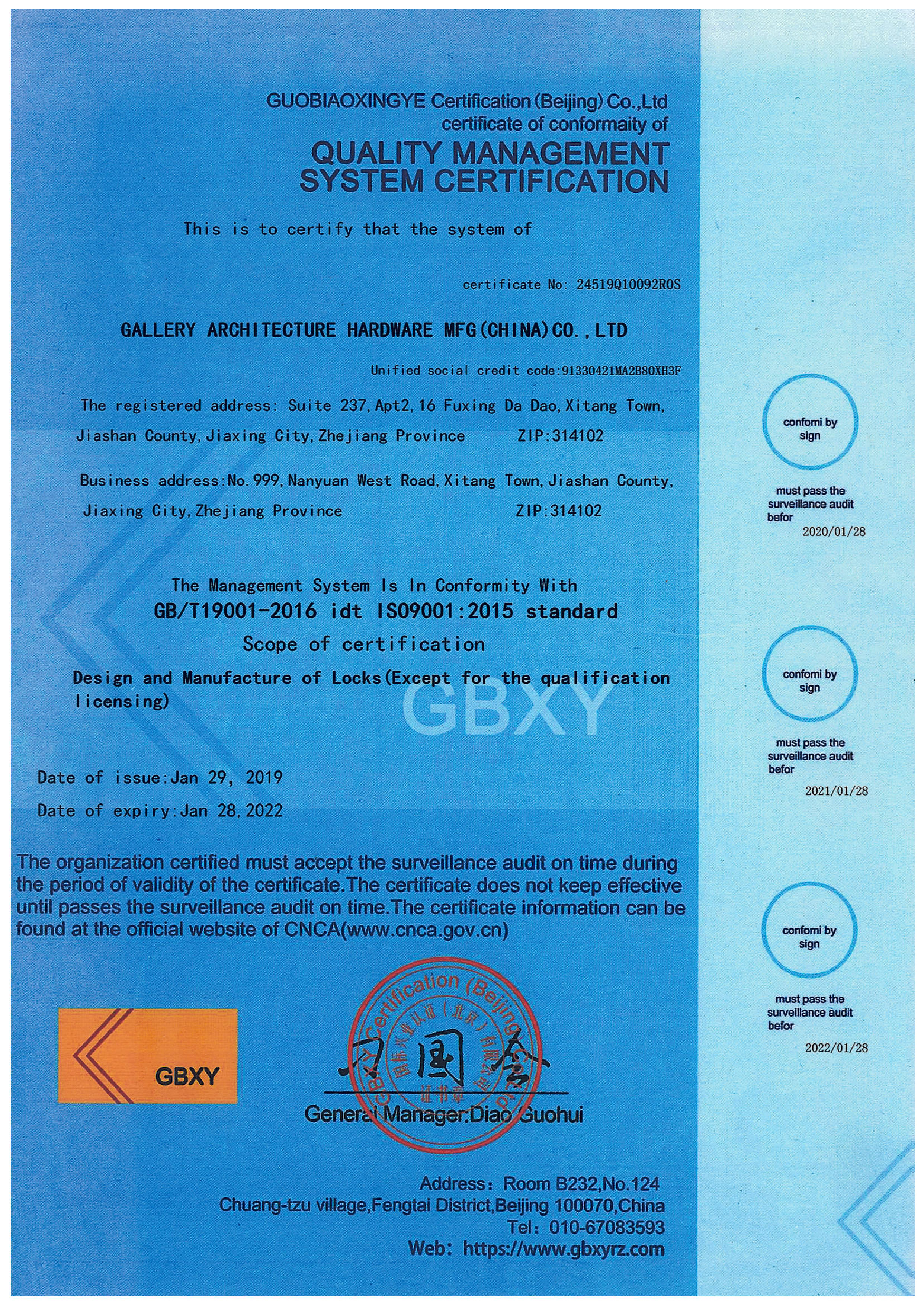 浙江堅(jiān)迪五金制造有限公司始建于 1995 年。自 2003 開(kāi)始,公司致力于高標(biāo)準(zhǔn)商業(yè)鎖的研發(fā)工作,并于 2006 及 2007 年,8700 插芯鎖系列獲得美國(guó)國(guó)家標(biāo)準(zhǔn) ANSI A 156.13-2005 一級(jí)、ANSI A 156.2-2003 二級(jí)和美國(guó) UL 10C3 小時(shí)防火測(cè)試認(rèn)證。自 1998 年以來(lái),公司不斷提升產(chǎn)品和客戶(hù)服務(wù)品質(zhì),并獲得了 ISO 9001 的認(rèn)證。